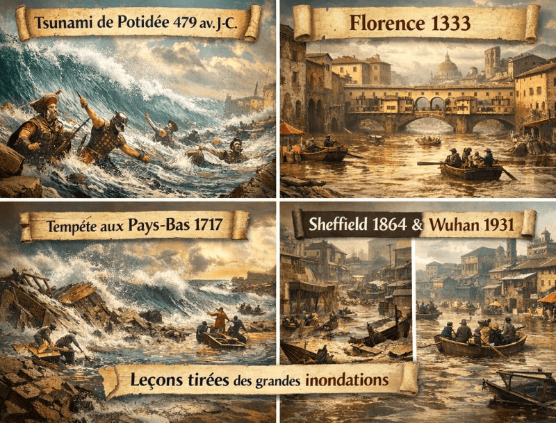 - Pays-Bas (1717) : même une société très organisée face à la mer peut être surprise. Quand l’événement dépasse les plans, la tentation revient : chercher une explication “extraordinaire”… au lieu de renforcer la prévention.