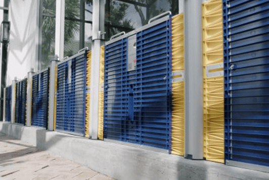 L’étanchéité de l’ouverture de porte est maintenue par un agencement de tube en caoutchouc gonflable breveté, qui entoure le cadre étendu. Lorsque le panneau est maintenu en position par les ailes déployées, le tube est gonflé par une pompe à air intégrée à commande manuelle.